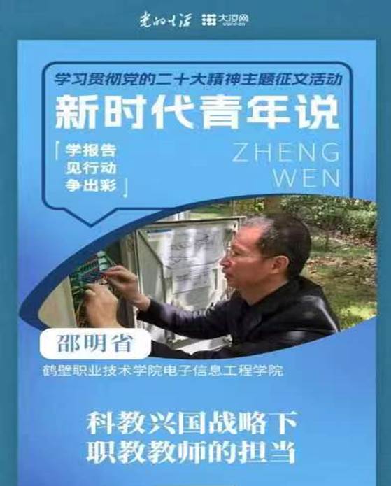 近日,304永利集团邵明省老师积极参与了《党的生活》杂志与大河网举办的新时代青年说征文活动,《科教兴国战略下职教教师的担当》一文被大河网刊发。文章以党的二十大报告强调的科教兴国为主线,从打铁还需自身硬、育人育德育心等方面强调了科技、教育与人才的重要性,将党的二十大精神作为思政元素融入课程,加强员工思想道德教育,用责任感、使命感厚植员工的拼搏精神,用专业励志案例鼓励员工,提升动手能力,为人才储备提供支撑。