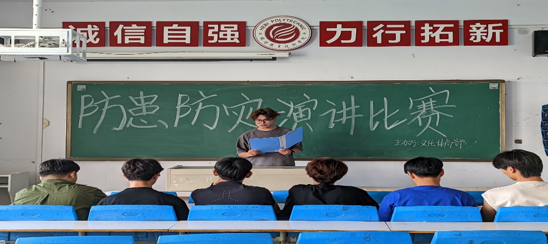 515日举办了40名员工参加的“防患未然,减灾同行”演讲比赛,同学们以校园突发事件、地震、洪水和火灾等自然灾害的鲜活事例为基础,阐述了应该如何预防和应对灾害,开阔了大家的视野,增强了防灾意识和应急意识。515日和16组织在校的41个班级共1610名员工召开了“人人讲安全、个个会应急——着力提升基层防灾避险能力”主题班会。班会上对校园内可能面临的灾害风险自然灾害基础知识的进行了讲解介绍应急响应的流程和步骤,着重强调了员工在校园内应遵守的安全规定和注意事项