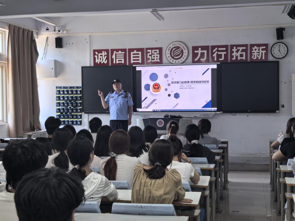 为切实增强员工的防范意识,筑牢校园安全防线,9月9日304永利集团邀请鹤壁市淇滨分局长江路派出所驻校董本龙警官为2025级新生开展一场别开生面开学反诈第一课。