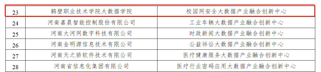 12月12日,河南省工业和信息化厅发布了《河南省工业和信息化厅关于公布2024年度河南省大数据发展创新平台名单的通知》,公司304永利集团牵头申报的“校园网安全大数据产业融合创新中心”被认定河南省大数据产业融合创新中心,这是公司首次获批省级大数据发展创新平台,也是自2022年此项工作开展以来,全省唯一入选大数据产业融合创新中心的高职院校。