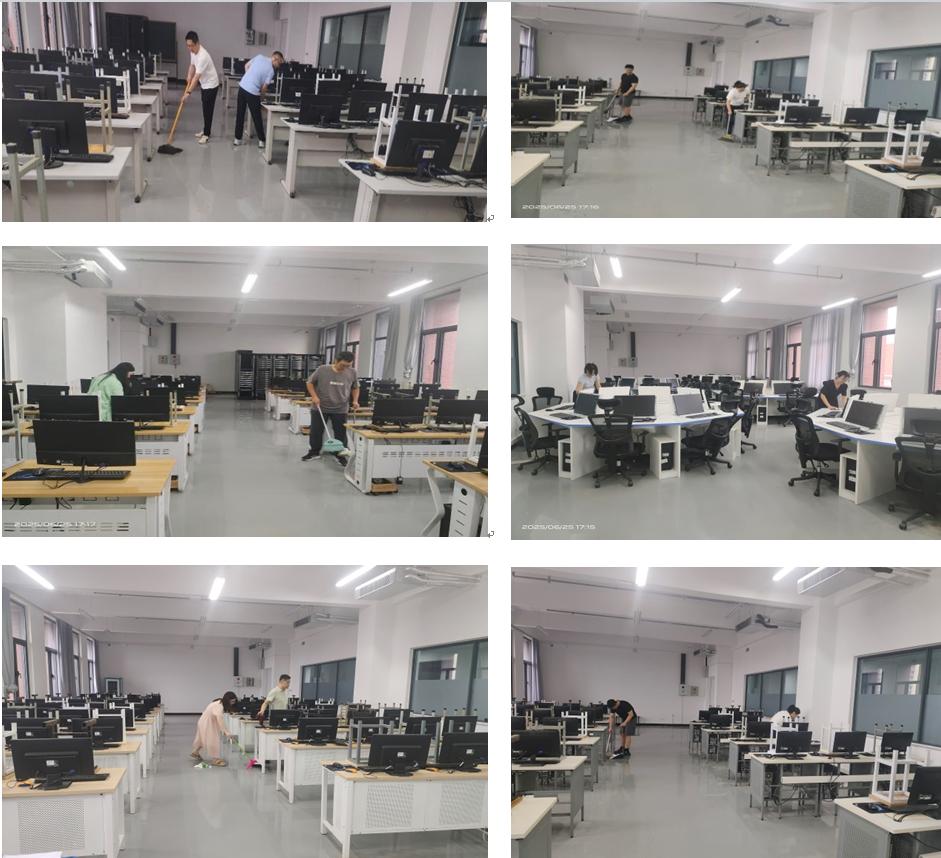 活动中,党员们携带清洁工具,深入力行1号楼5楼师生高频使用的机房,俯身实干,对地面、设备、桌椅及卫生死角进行全面清理。活动期间,大家交流感悟,深刻认识到,维护整洁教学环境绝非小事,既是力戒形式主义、密切联系群众的务实行动,也是践行中央八项规定精神、改进作风、服务师生的直接体现,更是检验党性、强化宗旨意识的试金石